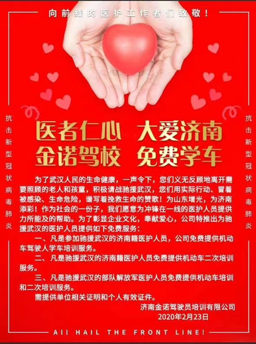 医者仁心,大爱济南,金诺驾校,免费学车!